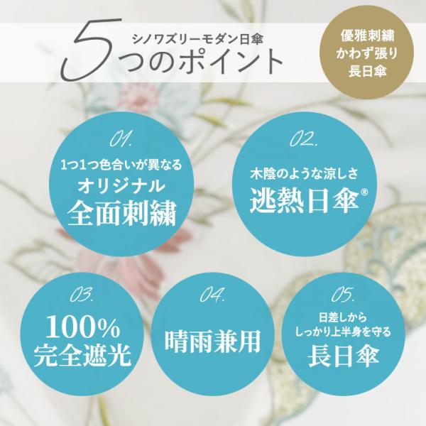 シノワズリーモダン 日傘 完全遮光 レディース 長傘 晴雨兼用 UVカット 涼しい かわず張り 遮熱 刺繍 ギフト 母の日
