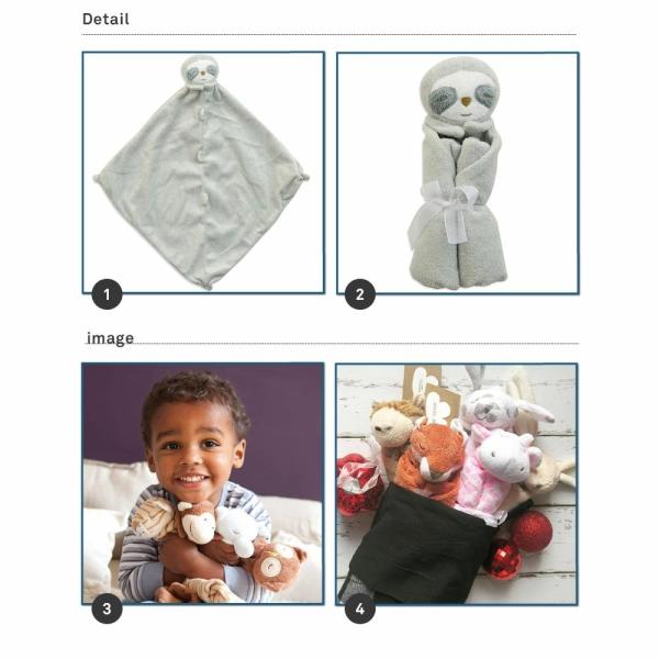 エンジェルディアのブランキーは 赤ちゃんの小さな動物のお友達です 毎日が新しい目線でいっぱいの赤ちゃんに その可愛い顔と優しい肌触りで変わらない安心感と喜びをもたらしてくれます 柔らかい100%のマイクロファイバーポリエステルを使用 赤ちゃんや子供たちの小さく可愛らしい手で握りしめたり 動物のお友達を連れてどこにでも出かけたくなる肌触りです ぬいぐるみやタオルとして お昼寝のお供などにも コンパクトになるので 持ち運びにも便利です 男の子 女の子にもおすすめ angeldear 出産祝い おしゃれ かわいい ひざ掛け ひざかけ グレー ピンク sloth 送料無料 マイクロファイバー 送料込