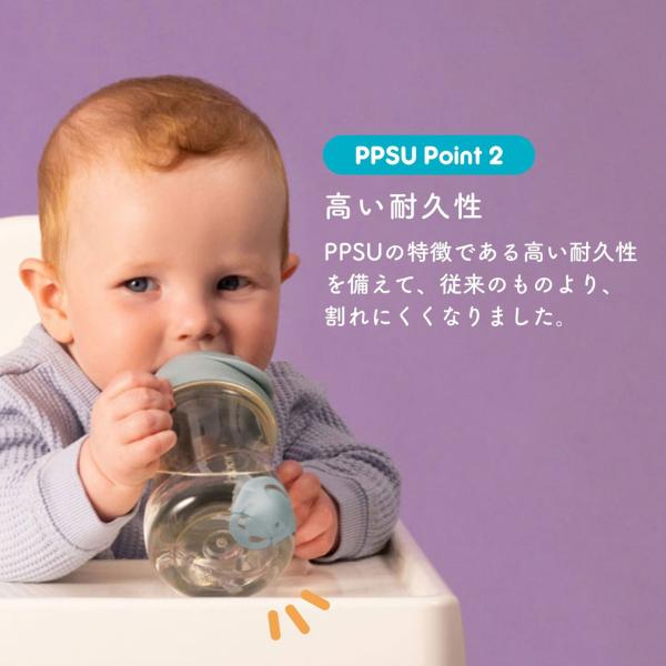 (漏れにくい,飲みやすいストローマグ)として世界中で人気のb.boxシッピーカップに,高品質PPSU(医療グレード)素材のモデルが登場高い耐久性を備えるPPSUは,熱に強く,割れにくいのが特徴毎日の水分補給に安心して使える素材です医療グレード=医療現場で使える安全性と耐久性を備えた高品質素材ですカップ内のストローには,角度を気にせず飲める便利なおもりを搭載これにより,赤ちゃんがどんな角度でも,最後までスムーズに水分補給ができます本体は握りやすいハンドル付きで,哺乳瓶からのステップアップや,離乳食と同時期のストローデビューにも最適お出かけやお風呂上がりなど,様々なシーンで活躍する漏れにくい構造も魅力ですボディはPPSU素材本来の琥珀色で,とても高い透明感がありますおもり部分にはハンドルとおそろいのカラーがついており,上質な質感と温もりを感じさせるデザインになっています対象年齢 : 6ヶ月?高品質PPSU使用 : 耐久性が高く,熱に強い医療グレード素材(自然な琥珀色)