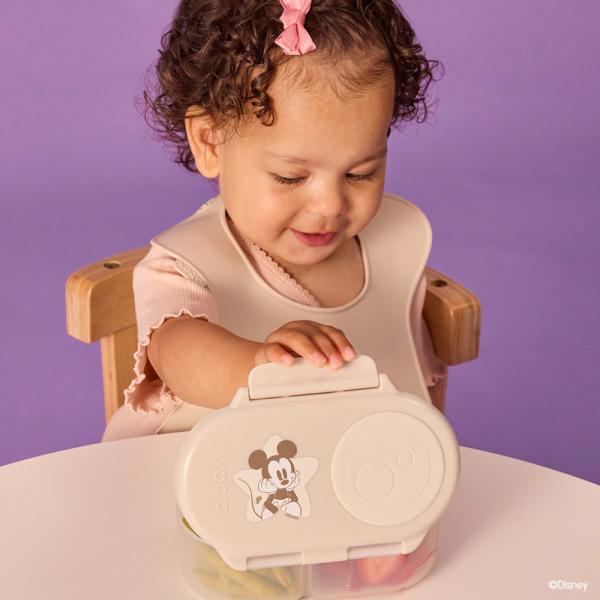 ディズニーの仲間たちとビーボックスのコラボアイテムが新登場(スナックボックス)は幼児や少食の方のお弁当箱として,または離乳食初期のとろみのある食べ物や外出先でのおやつの持ち運び用のケースとしても便利なコンパクトサイズです通園時にお子さんの手でも開けやすく,閉めやすいようにロック部分が一箇所になっていますパッキンも蓋の裏と一体型になっているのでズレて,蓋がはまりにくくなる心配が要りませんさらに,パッキンがシート状になっているので密閉力が高まり,お弁当箱が傾いても液漏れしにくい構造になっています(完全に漏れを防ぐものではありません)仕切りもあるので,ご飯とおかずの味が混ざらず,栄養を考えた盛り付けをすることができます詳細対象年齢 : 3歳 - 容量 : 350mL素材 : ポリプロピレン/シリコーンBPA,フタル酸エステル類,およびPVCフリーな素材を使用していますサイズ : H105mm x W162mm x D58mm本体重さ : 166g耐熱温度 : [本体,蓋]120°C[蓋裏]220°C耐冷温度 : [全パーツ]-20°Cディズニー Snackbox