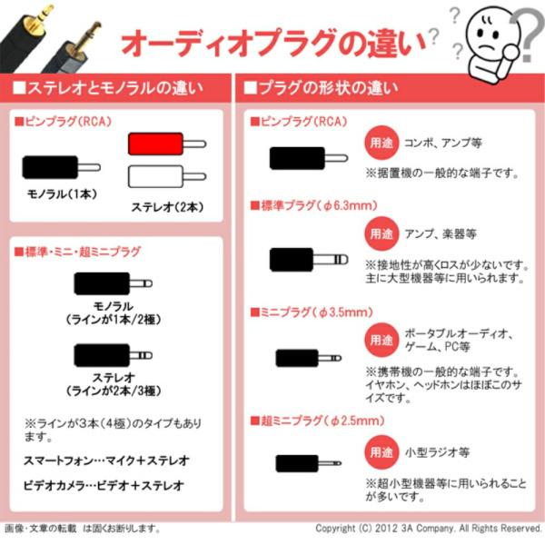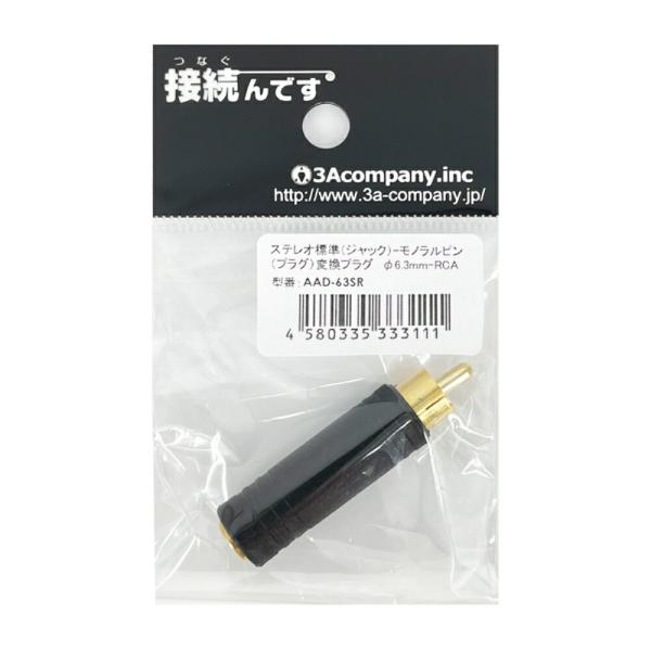 ステレオ標準(メス)-モノラルピン(オス)変換プラグ φ6.3mm-RCA オーディオ変換アダプタ 3Aカンパニー AAD-63SR