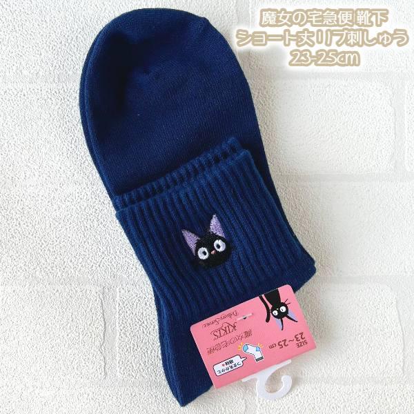 メール便OK ジブリ グッズ 24AW 魔女の宅急便 靴下(ソックス) ショート丈 リブ刺繍 23-25cm 大人用サイズ スタジオジブリ ギフト レディース ジジ jiji キャラ…