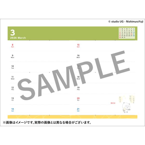にしむらゆうじさんのスケジュール帳が今年も登場!季節を楽しむスタジオUGの仲間たちと一緒に1年を過ごしてみませんか?月間ページ、週間ページに加え、メモページ付きです。