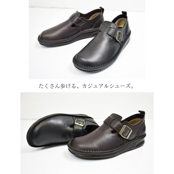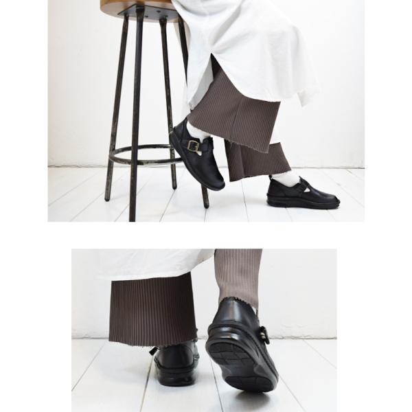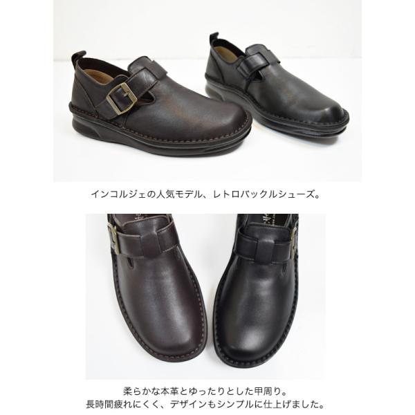 インコルジェ 本革 日本製 バックル コンフォート レディース フラットシューズ 歩きやすい 疲れにくい 幅広 3cm 黒(FOO-SP-8005)