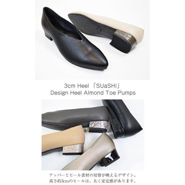 「SUASHI」のアーモンドトゥチャンキーヒールパンプス。