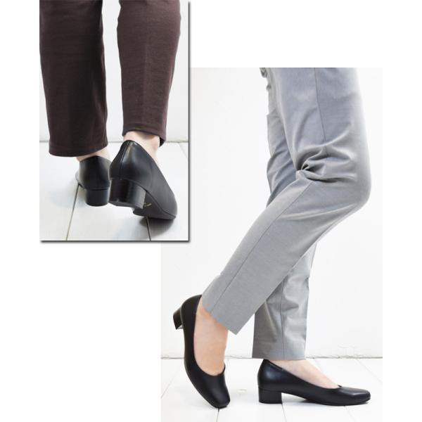 パンプス レディース 歩きやすい 痛くない 走れる 疲れない ビジネス スクエアトゥ チャンキーヒール 幅広 黒 3cm [FOO-SN-R4031]
