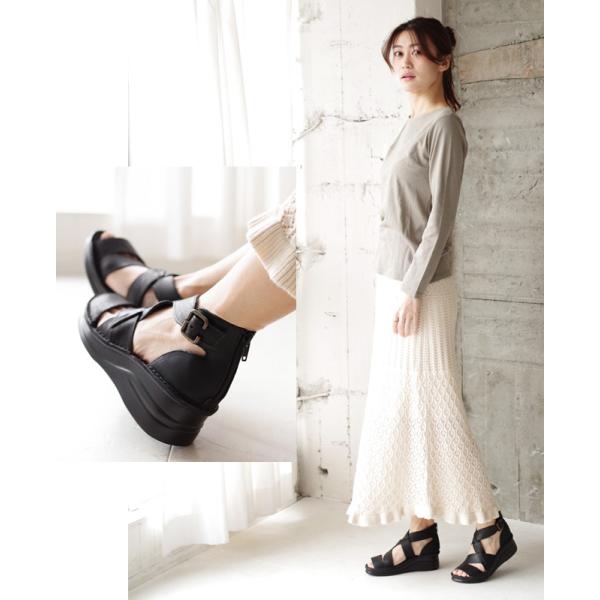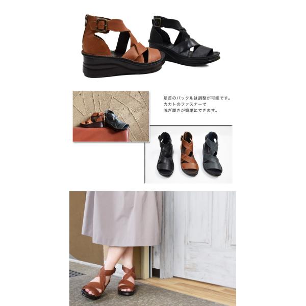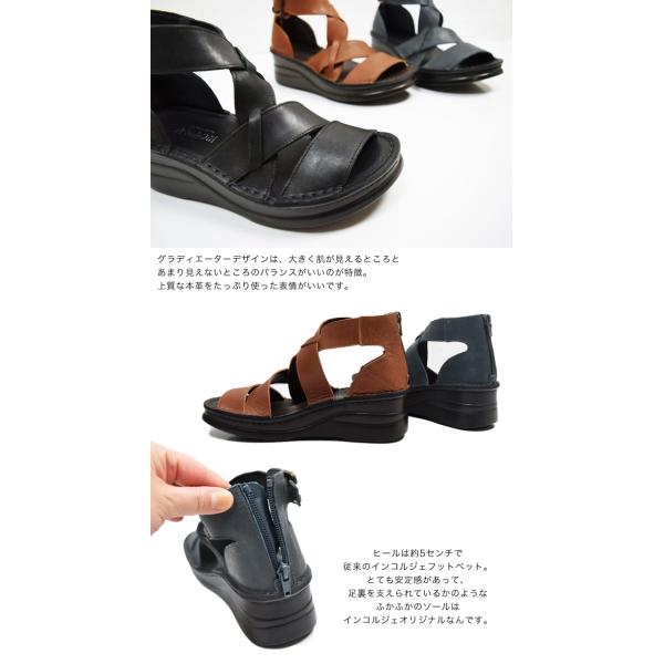 インコルジェ サンダル レディース 本革 日本製 グラディエーターサンダル コンフォート カジュアル 幅広 3E 歩きやすい 疲れにくい 厚底 黒 5cm(FOO-SP-4032)