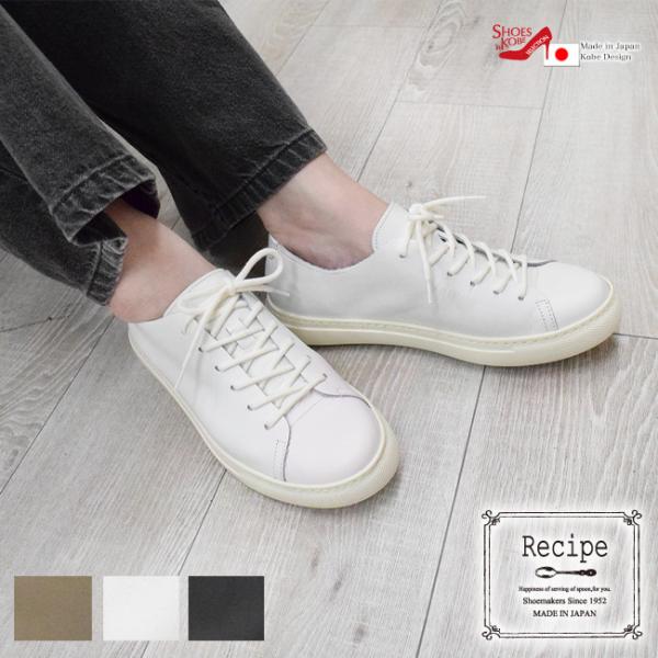 Recipe スニーカー レディース 本革 ローカット シンプル 歩きやすい 疲れにくい 柔らかい 日本製 [FOO-MD-RP330]