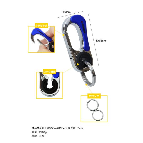 カラビナ ダブルリング キーホルダー キーリング ロック機能 フック ファッション デザイン メンズ 男性 鍵 キー おしゃれ 小物 金属製