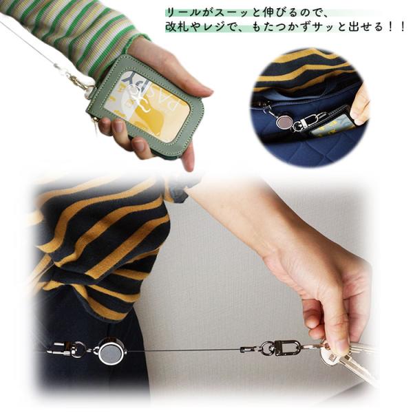 黒い金具にワンポイントのカラーが特徴のキーリール。
