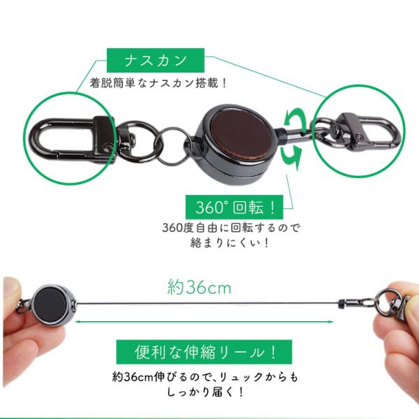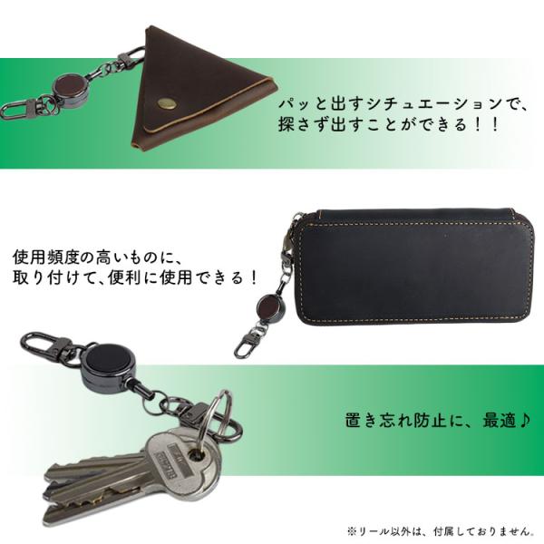 キーリール リール ブラック 黒 カラビナ 軽量 キーリング キーホルダー コード 鍵 キャンプ アウトドア 釣り 伸縮 伸びる