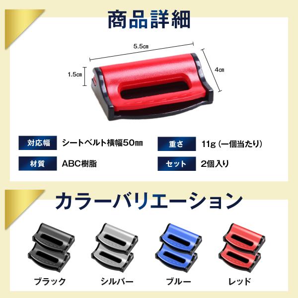 調節 ベルト調整 クリップ 子供 妊婦 アクセント 車 2個 赤 青 黒