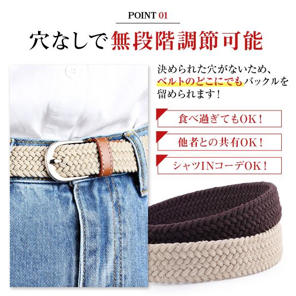 ベルト 穴なし 無段階 調節楽 メンズ レディース 細め メッシュ カジュアル ゴム ストレッチ 編み込み ゴルフ 制服 ジーンズ 男女兼用 伸縮