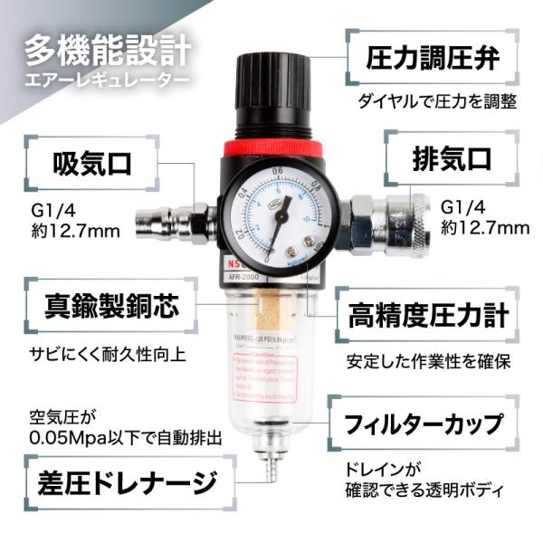商品名:レギュレーター エアー フィルター 圧力調整 オイル コンプレッサー エアーツール ウォーター アルミニウム合金 セパレーター