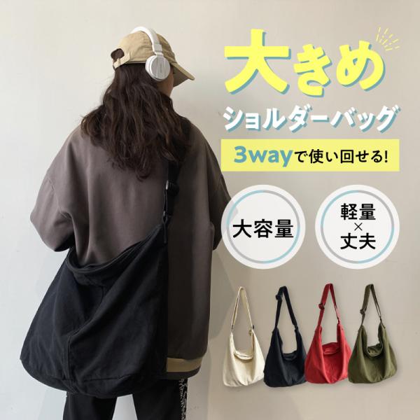 ショルダーバッグ レディース メンズ 軽い a4 大きめ 斜めがけ おしゃれ 通勤 通学 シンプル ファスナー 無地 キャンバス 3way