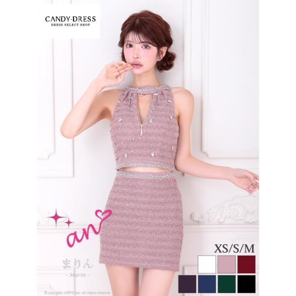 【SALE】【50%OFF】【an/アン】ラメ/ ツイード/ ビジュー/ ジッパー/ ビジュー/ セットアップ/ ミニドレス/ キャバドレス / ワンピース/ ドレス [AOC-3894]