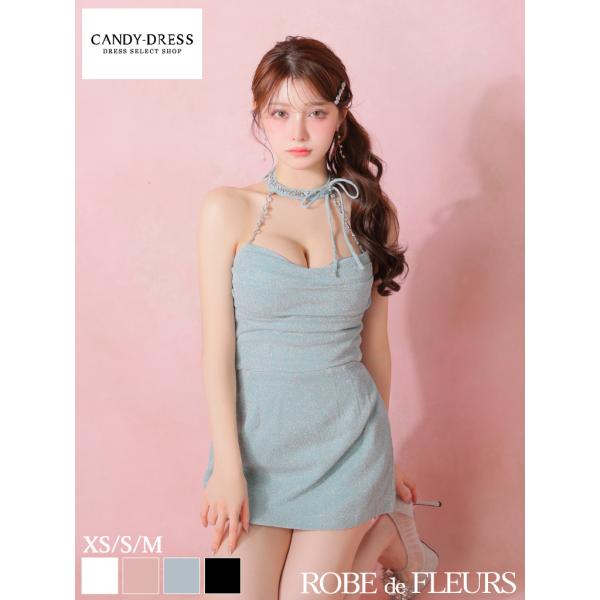 【ROBE de FLEURS / ローブドフルール】ストレッチ/ ラメ/ ドレープ/ ビジュー/ ホルター/ フレア/ セットアップ/ ミニドレス/ キャバドレス / ワンピ [fm3772]