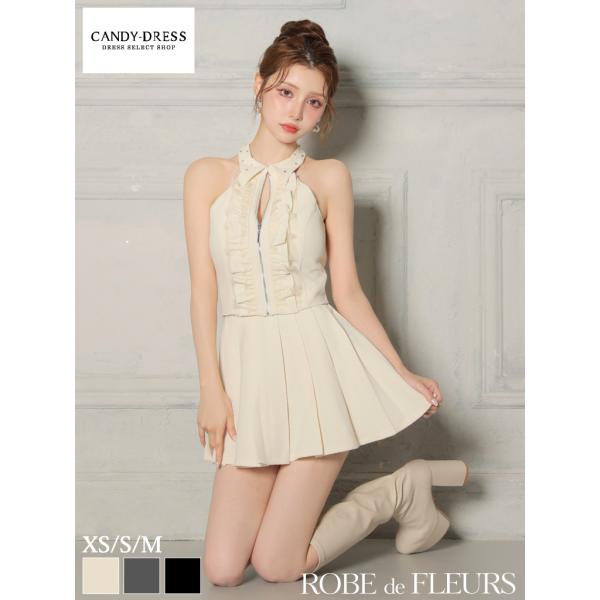 【ROBE de FLEURS / ローブドフルール】襟/ ジッパー/ フリル/ アメスリ/ フレア/ セットアップ/ ミニドレス/ キャバドレス / ワンピース [fm4157]
