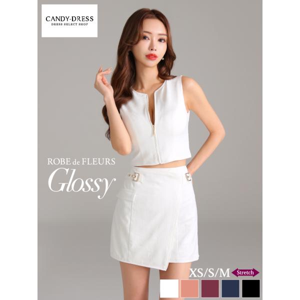 【ROBE de FLEURS Glossy / ローブドフルールグロッシー】 ジッパー/ キャミ/ セットアップ/ フレア/ ミニドレス/ キャバドレス/ ワンピース [GL2896]