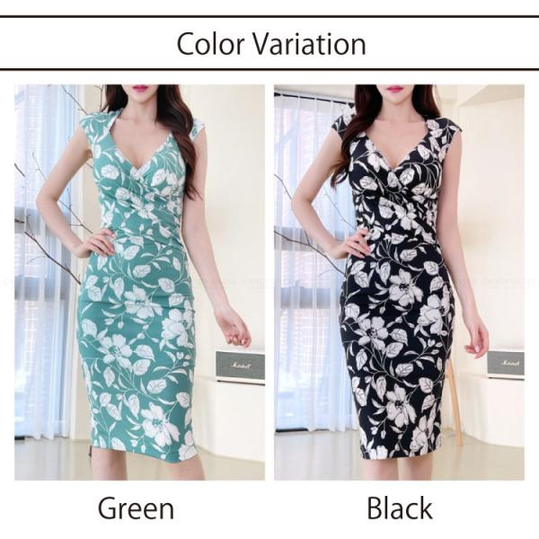 Luxury Dress ストレッチ×フラワープリントカシュクールフレンチスリーブタイトミディドレス TR210516 韓国製 正規品 膝丈 ミディ丈 ワンピース 銀座