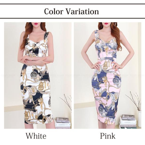 【予約】 Luxury Dress ストレッチ×ヴィンテージスカーフ柄プリントノースリーブタイトミディドレス TR210901 韓国製 韓国ドレス 正規品 ワンピース 結婚式