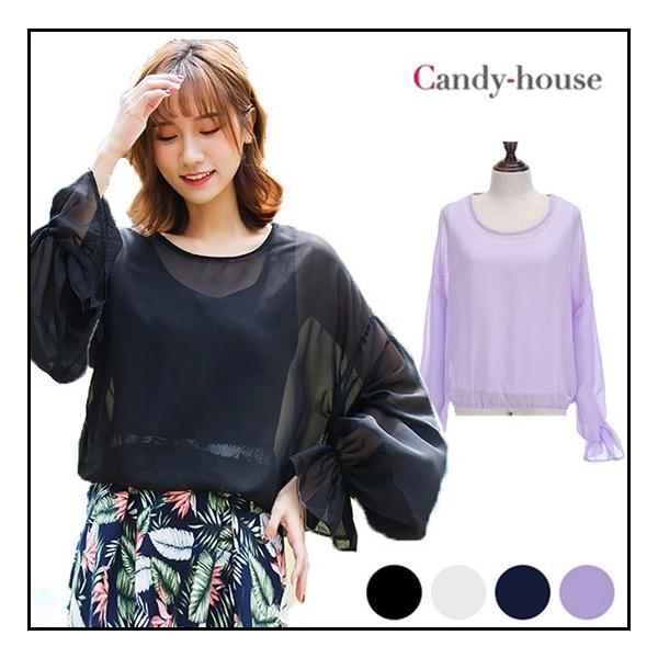 【訳あり/値下げ/返品交換不可】レディース シフォン ブラウス 長袖 インナー付き ボリューム袖 綿 オフィス 通勤 デート 春 夏 1899