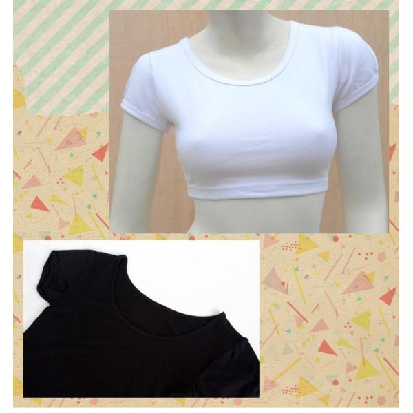 レディース ショート丈 トップス インナー へそ出し 半袖 五分丈 ショートトップス パフスリーブ 重ね着 レイヤード セクシー 無地 シンプル ダンス 春 夏 1504