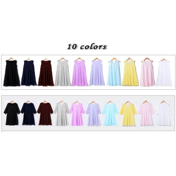 レディース ワンピース ノースリーブ 七分袖 シフォン フレア チュニック ミニ ひざ丈 裏地つき 透け感 ドレープ 無地 オフィス 通勤 旅行 春 夏 1517
