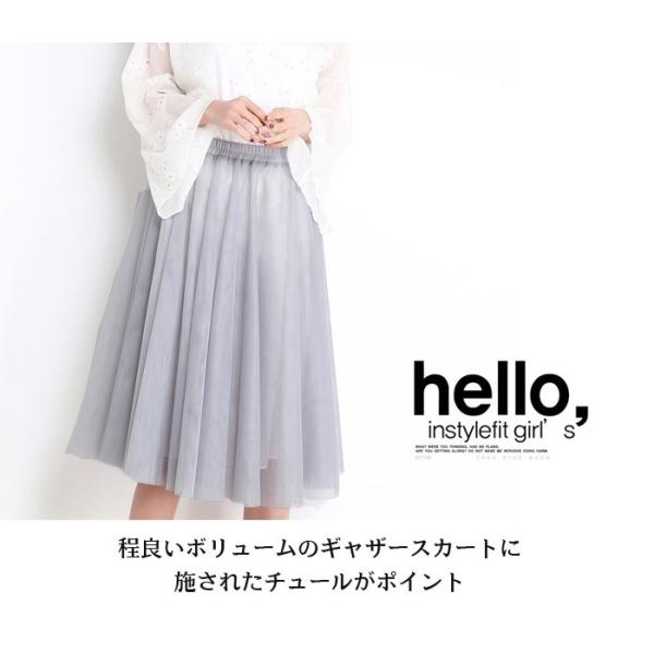 程良いボリュームのギャザースカートに施されたチュールがポイント