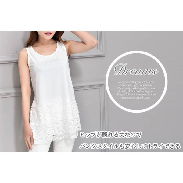 レディース タンクトップ 裾レース インナー トップス ノースリーブ ロングタンクトップ ヒップカバー お尻カバー Aライン レース フリル 重ね着 春 夏 1775