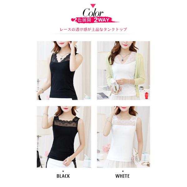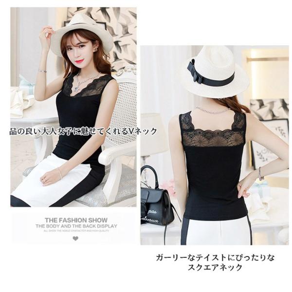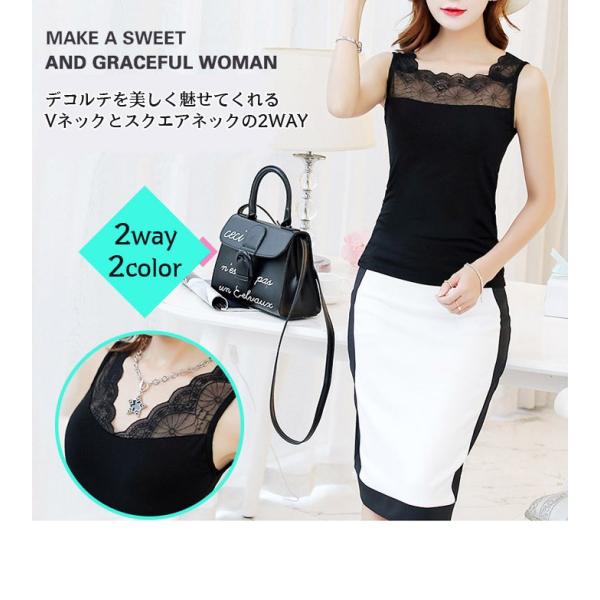 レディース タンクトップ レース トップス インナー 2way Vネック スクエアネック ノースリーブ ストレッチ 重ね着 レイヤード 大人 セクシー 春 夏 1786