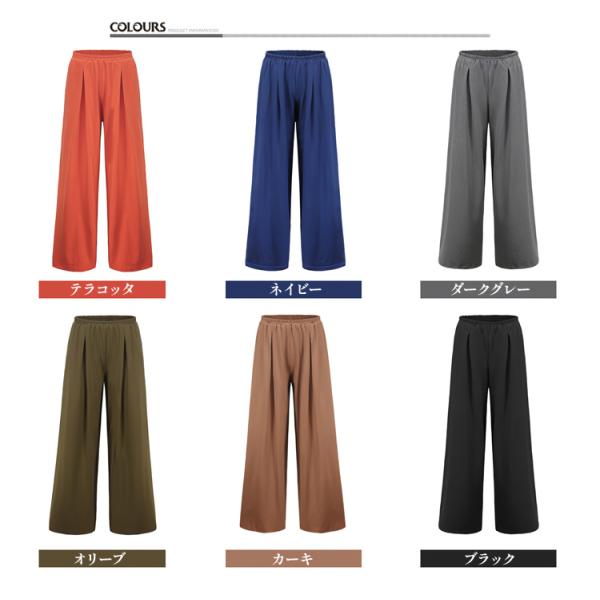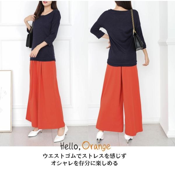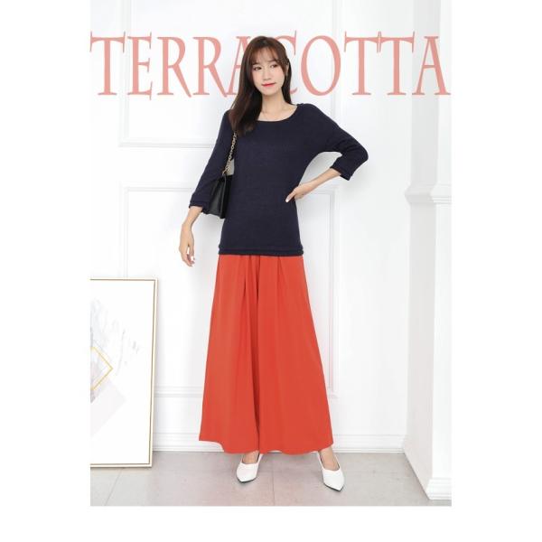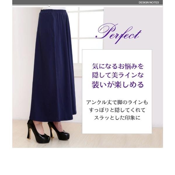 レディース コットン ワイドパンツ ガウチョパンツ フレアパンツ スカンツ ロング丈 マキシ丈 ボトムス パンツ 綿 ウェストゴム 着やせ 美脚 春 秋 冬 1951