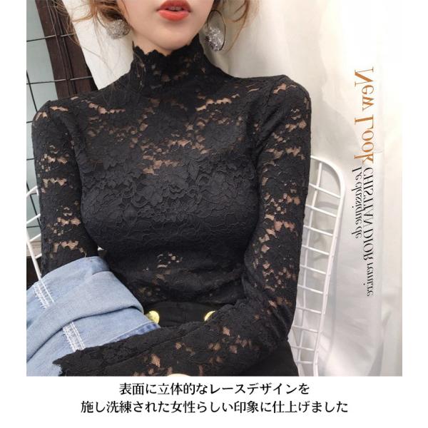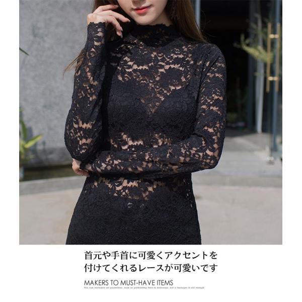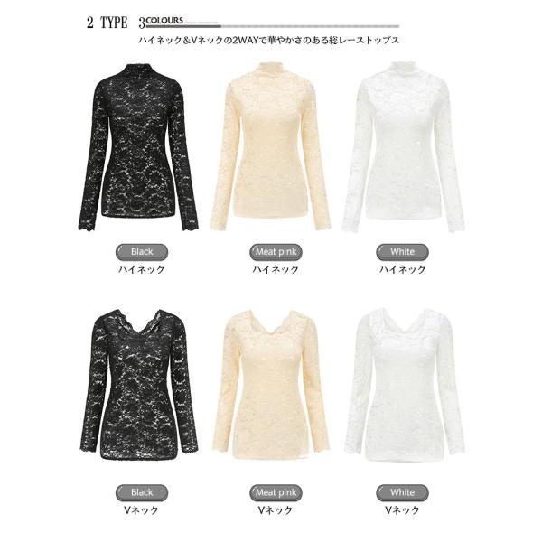 レディース 総レース トップス インナー 長袖 花柄レース 透け感 ハイネック ダンス 衣装 イベント パーティ セレモニー 可愛い セクシー 春 秋 冬 2001