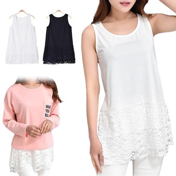 レディース タンクトップ 裾レース インナー トップス ノースリーブ ロングタンクトップ ヒップカバー お尻カバー Aライン レース フリル 重ね着 春 夏 1775