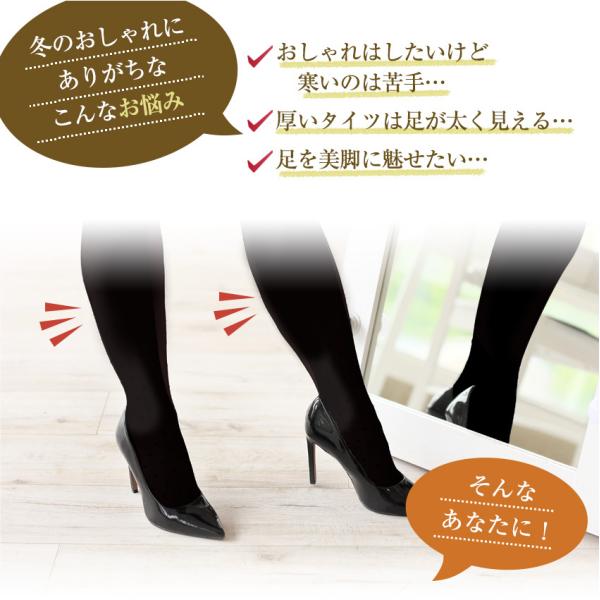 裏起毛1200Dで温かいのにストッキングのような透け感で美脚を演出
