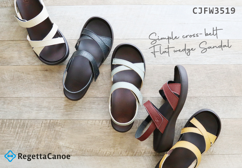 バックベルト付きクロスベルトデザインのシンプルウェッジソールサンダル