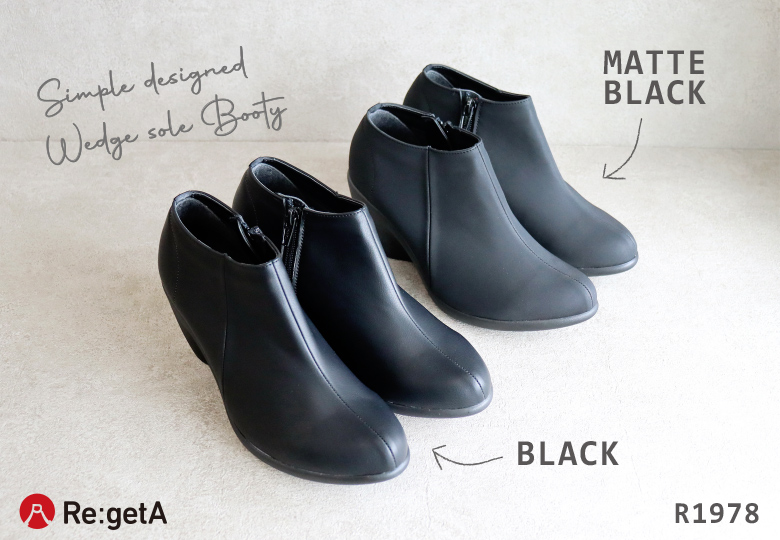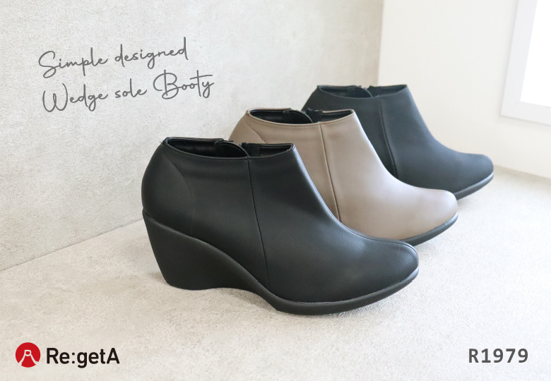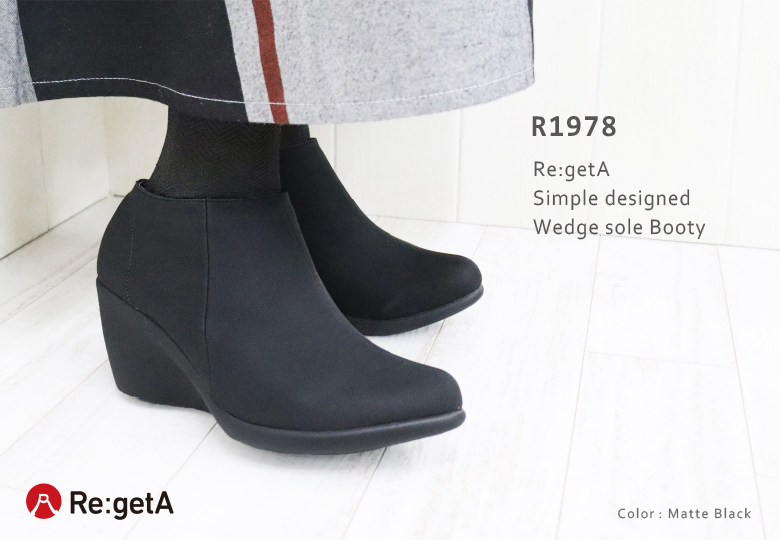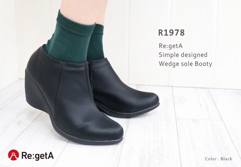 リゲッタ Re:getA ショート ブーツ ブーティ レディース 美脚 日本製 7cm ヒール ウェッジ アーモンドトゥ ブラック 秋 冬 R1978
