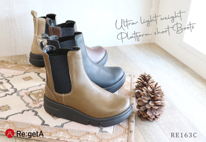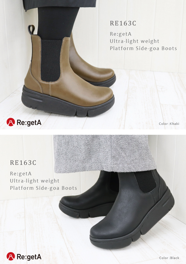 リゲッタ Re:getA ブーツ レディース RE163C 靴 厚底 超軽量 サイドゴア 撥水 コンフォート シンプル おしゃれ 旅行 日本製