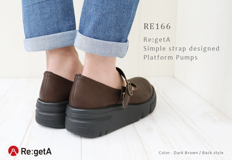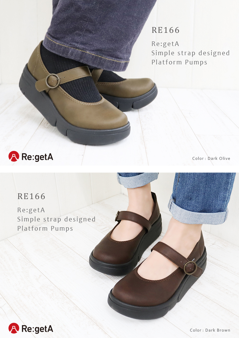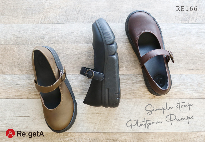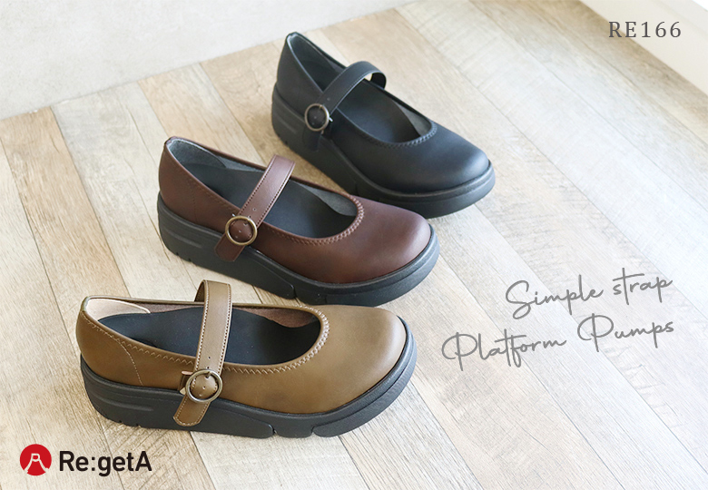 リゲッタ Re:getA シューズ レディース RE166 靴 厚底 パンプス 甲ストラップ コンフォート シンプル おしゃれ 仕事 旅行 日本製