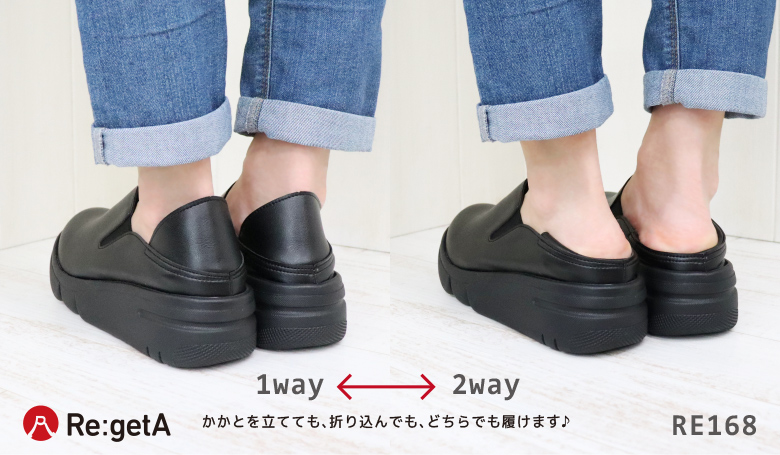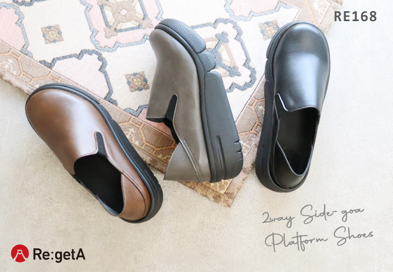 リゲッタ Re:getA シューズ レディース 靴 RE168 サイドゴア 2way スリッポン 厚底 EVA 軽量 軽い コンフォート フラット 歩きやすい 日本製 春 夏 秋 冬