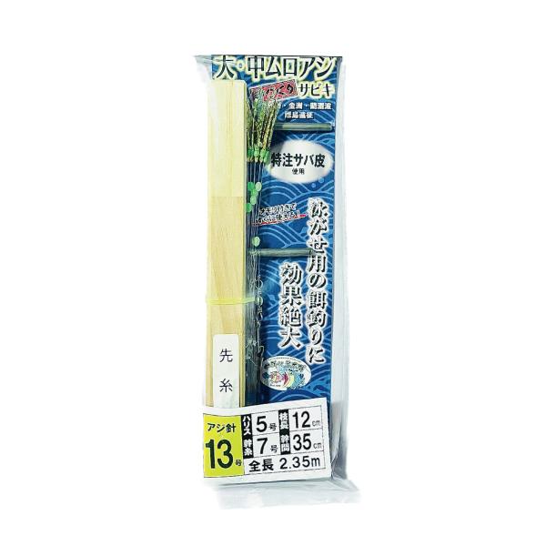 大・中ムロアジサビキ アジ針13号 特注サバ皮使用 オモリ付き