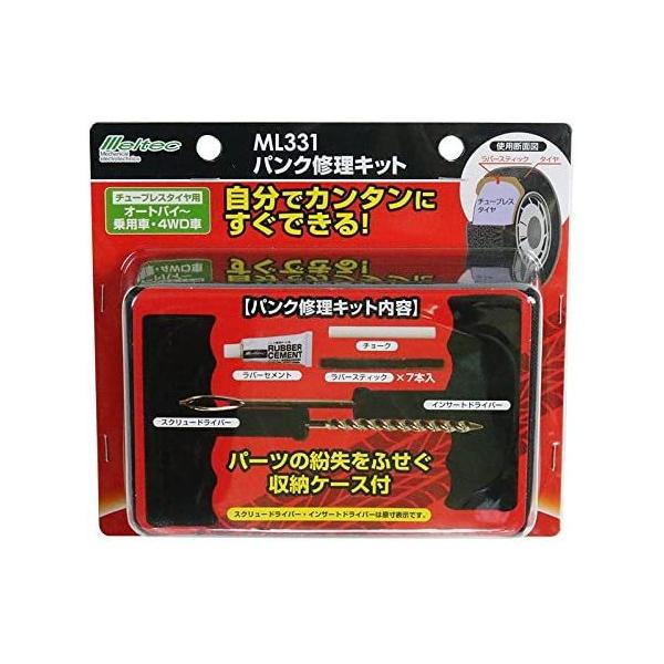 車 タイヤ パンク修理キット オートバイ 乗用車 4WD車まで 収納ケース付き その他5種セット 大自工業 ML331
