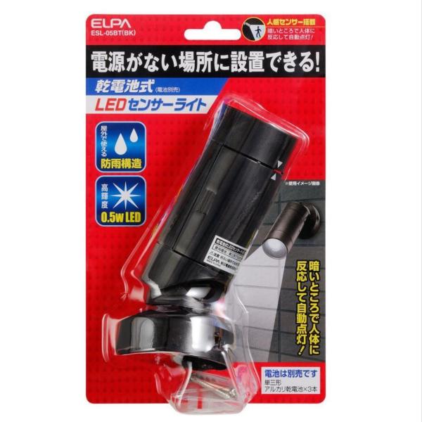 人感センサーライト LEDライト 屋外 電池式 防水 ガーデンライト 防水 明るい センサー 自動点灯/消灯 白色LED 防水 防雨 庭先 玄関 家庭菜園 ESL-05BT(BK)