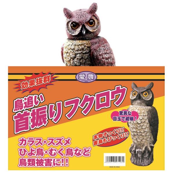 鳥追い フクロウ 首振り 鳥よけグッズ 害鳥対策 防鳥 撃退 ベランダ ゴミ荒らし防止 愛農 F-46R