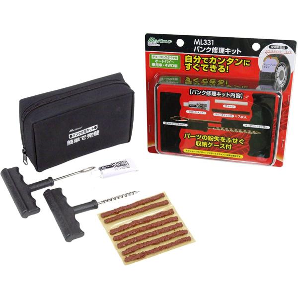 車 タイヤ パンク修理キット オートバイ 乗用車 4WD車まで 収納ケース付き その他5種セット 大自工業 ML331