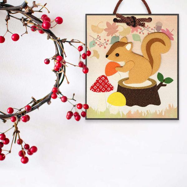 高齢者 手芸 押絵 押し絵 介護施設 レク リハビリ 押し絵かべ飾りキット 秋の実りとりす