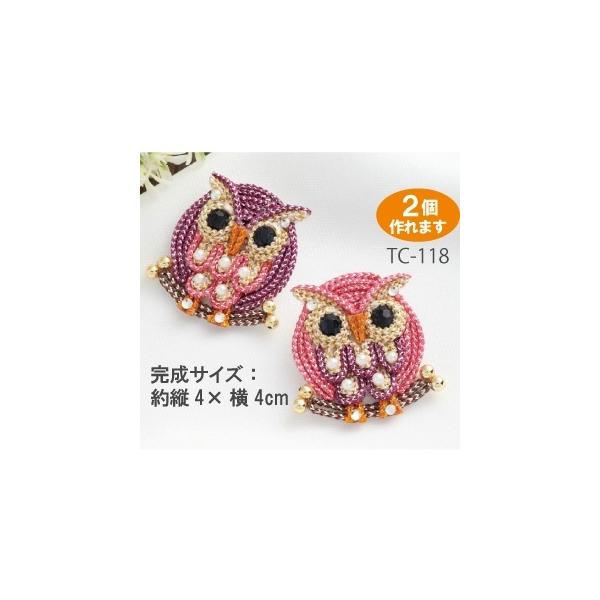 高齢者 リハビリ 簡単 手芸 メタリックヤーンで作るきらきらブローチ TC-118フクロウ