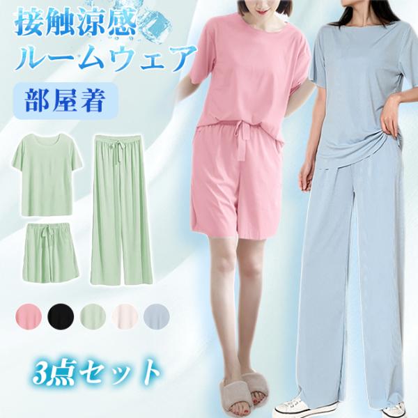 接触涼感 ルームウェア 3点セット 冷感 部屋着 セットアップ ショーツ ウエストゴム 上下セット 柔らかい 薄手 シンプル 爆買