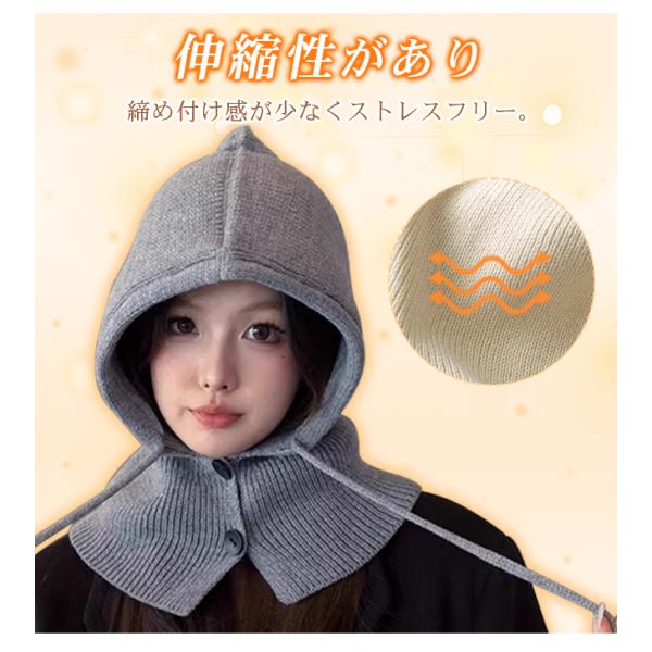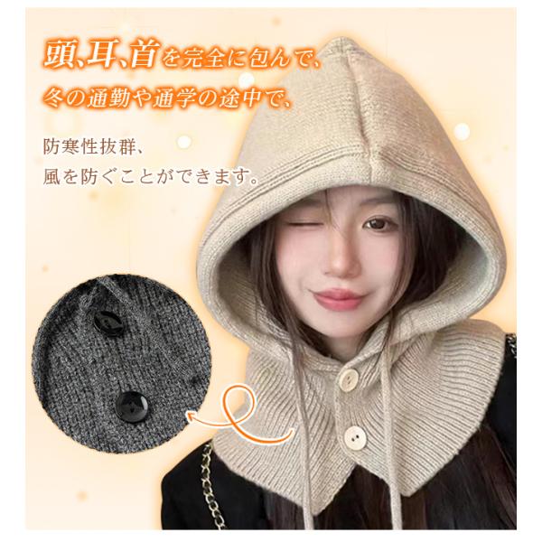 【クーポンで200円OFF】ニット帽子 ネックウォーマー 紐付き 暖かい 防寒対策 小顔効果 レディース フード ハット 耳保護 厚手 秋冬 アウトドア 爆買