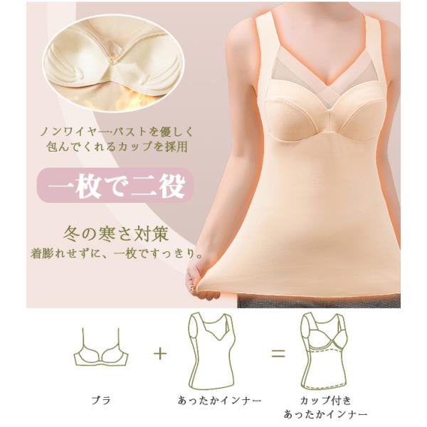 インナー カップ付き タンクトップ 裏起毛 ふわもち起毛 あったかインナー ノンワイヤー 両面起毛 キャミソール レース 爆買